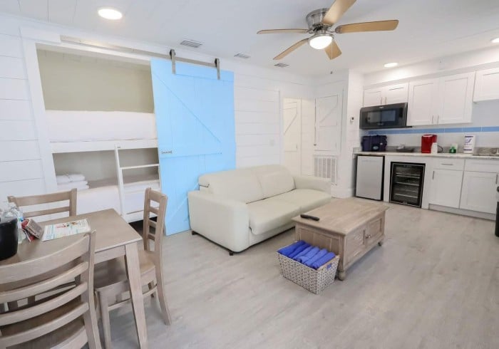 Siesta Bunkhouse One Bedroom – Sleeps 6 Bed: 1 King Bed, 2 Twin Beds, 1 Sofa Bed Book Now $ 377.57 Per Night